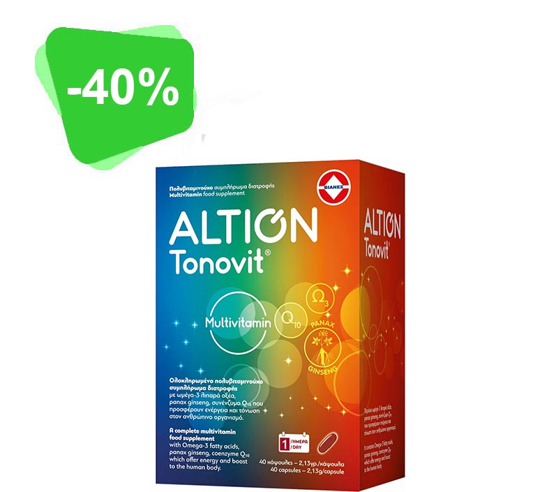 ALTION Tonovit Multivitamin Ολοκληρωμένο Πολυβιταμινούχο Συμπλήρωμα Διατροφής 40 κάψουλες – Πολυβιταμίνη με ωμέγα – 3 λιπαρά οξέα, panax ginseng, συνένζυμο Q10.