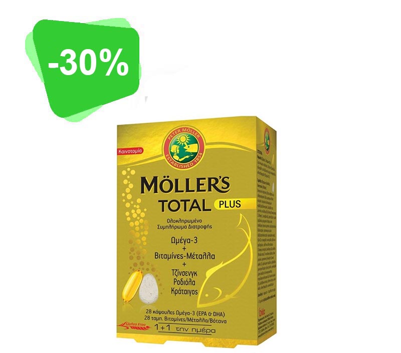 Mollers Total Plus Ολοκληρωμένο Συμπλήρωμα Διατροφής Ωμέγα-3 Με Βιταμίνες Και Μέταλλα 28 Caps+28 Tabs