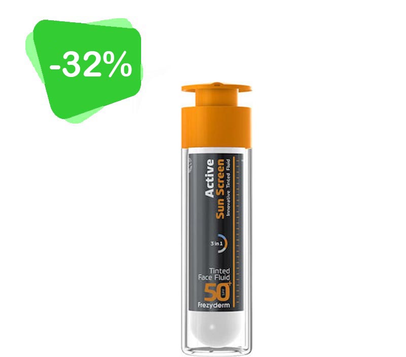Frezyderm Active Sun Screen Innovative Tinted Fluid Αδιάβροχο Αντηλιακό Προσώπου SPF50 με Χρώμα 50ml