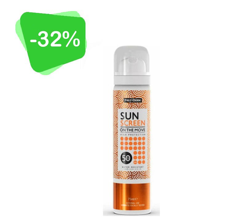 Frezyderm Sun Screen on the Move Αδιάβροχο Αντηλιακό Προσώπου και Σώματος SPF50 Spray 75ml