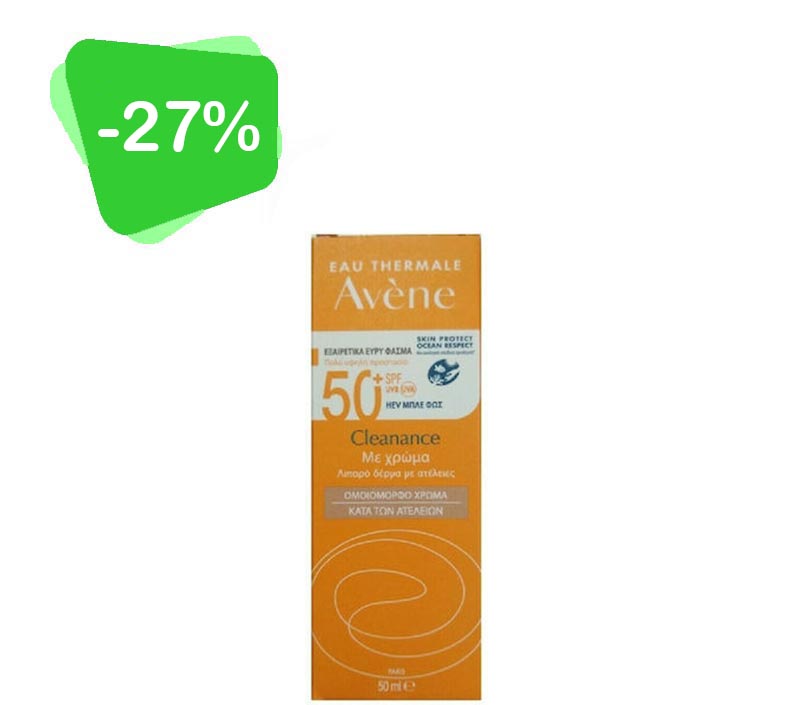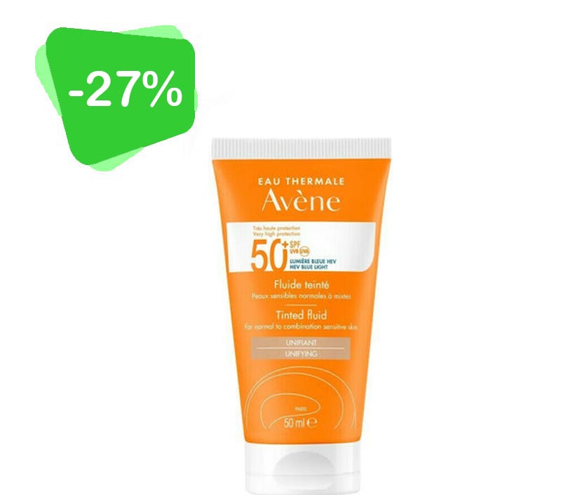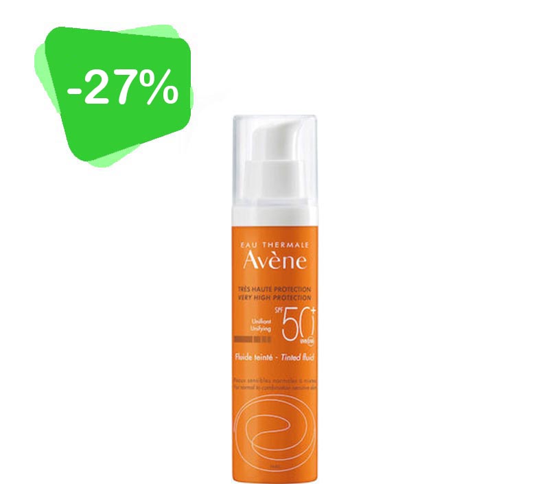 Avene Αδιάβροχο Αντηλιακό Προσώπου SPF50 με Χρώμα 50ml. Ανθεκτικό στο νερό και παρέχει πολύ ευρεία προστασία από τις UVB-UVA.