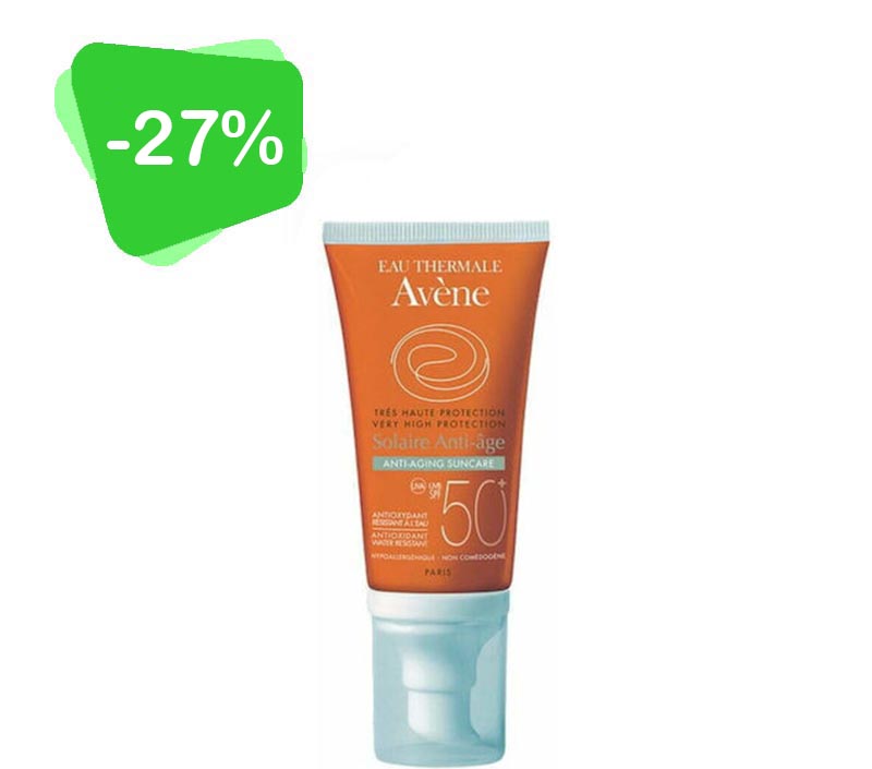 Αντηλιακή κρέμα προσώπου με αντιγηραντική δράση. Προσφέρει πολύ υψηλή αντηλιακή προστασία με SPF50+ για το ευαίσθητο δέρμα.