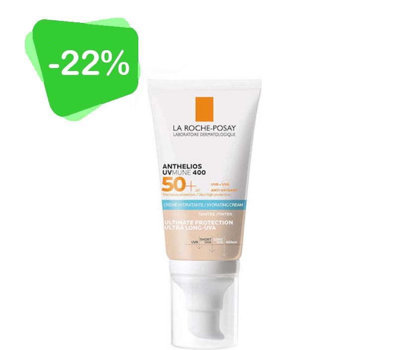 Αντηλιακή προσώπου SPF50+ με χρώμα για λιπαρό δέρμα με ατέλειες. Κατάλληλο για πρόσωπο και λαιμό